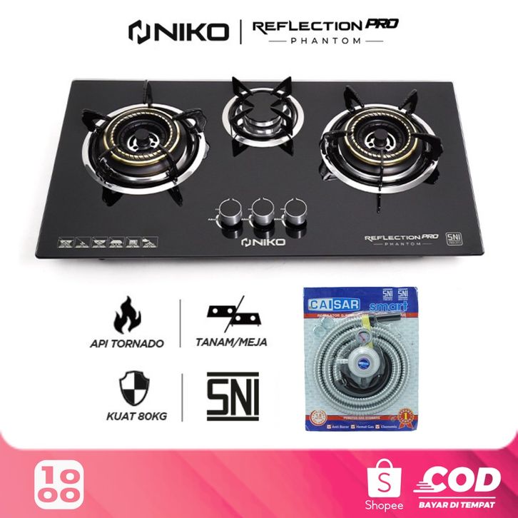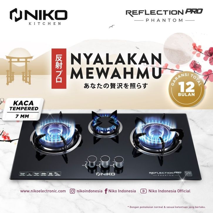 [Mall]Kompor Gas Kaca 3 Tungku Niko Reflection Pro Phantom Kompor Tanam Meja