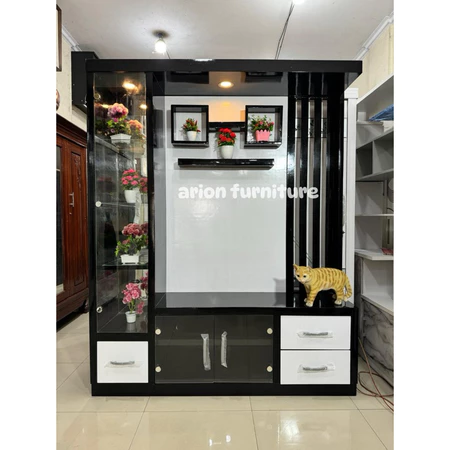 Lemari Kaca Ruang Tamu Back Drop Tv Bupet Tv Bufet Partisi 43 55 Inc Bufet Pajangan Hias