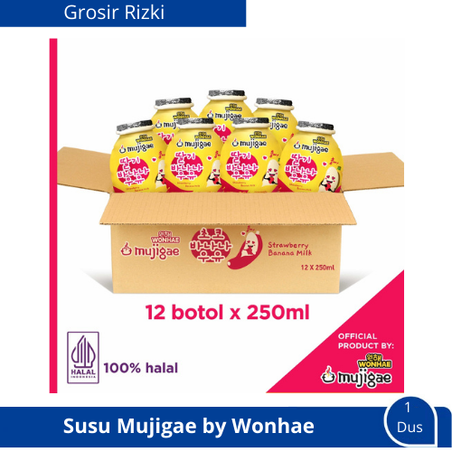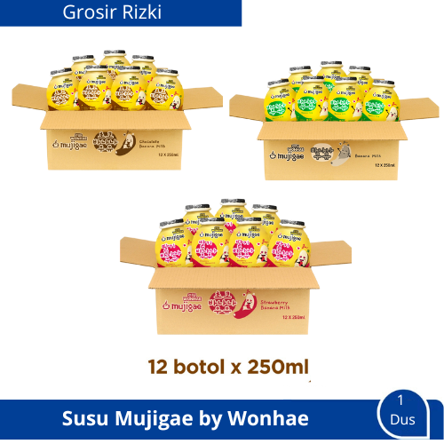 Susu Mujigae by Wonhae Banana Milk Strawberry/Original/Chocolate 250 mL 1 Dus 12 Pcs
