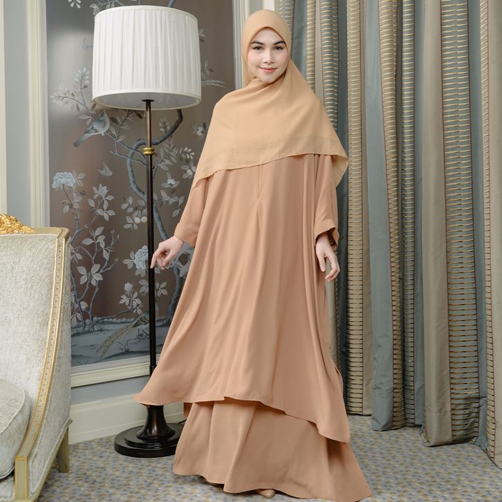 Baju Gamis Terbaru One Set Tunik Melayu Pakaian Muslim Wanita Model Kekinian Atasan Tunik Bawah Rok