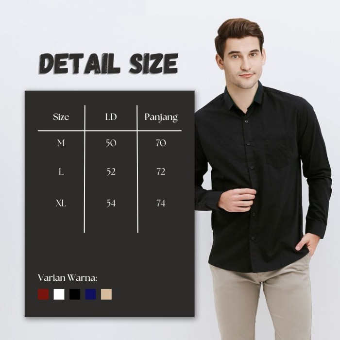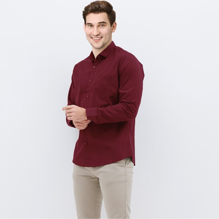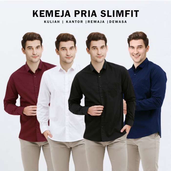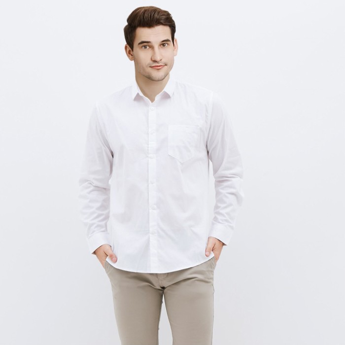 KEMEJA PRIA SLIMFIT LENGAN PANJANG POLOS KULIAH KANTOR REMAJA DEWASA - PUTIH, L