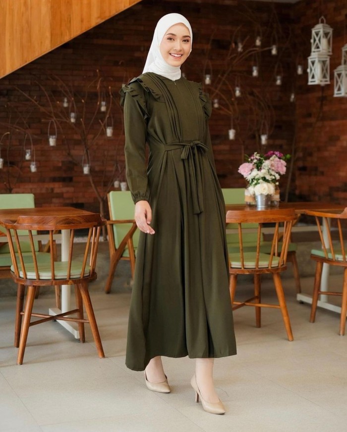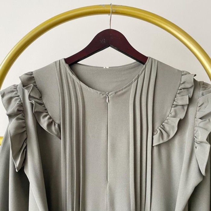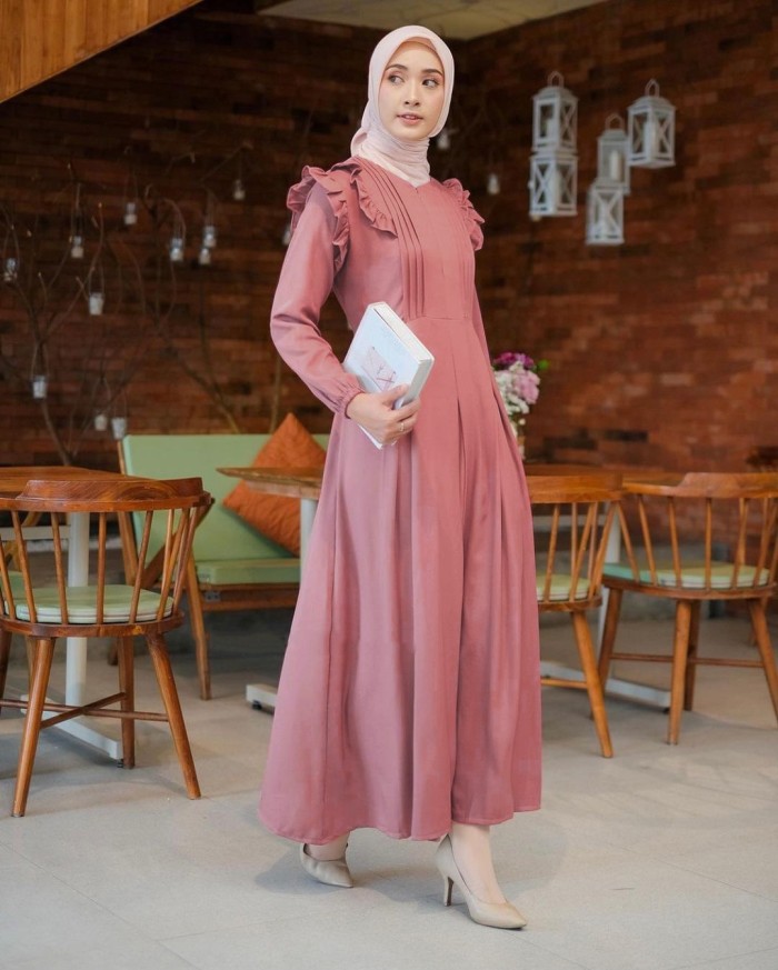 BAJU GAMIS TERBARU 2023 LEBARAN WANITA KEKINIAN BAHAN CRAP PREMIUM - MOCCA