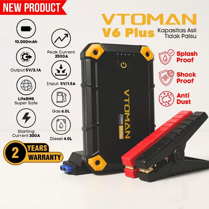 VTOMAN V6 PLUS 10000 mAh Jump Starter Aki Mobil Motor Power Bank Jumper Aki Alat Jamper Aki