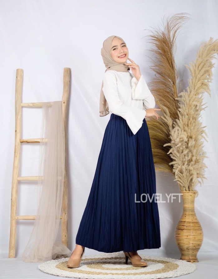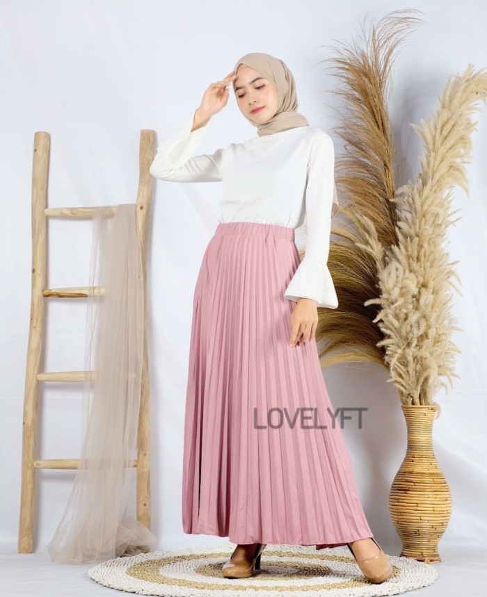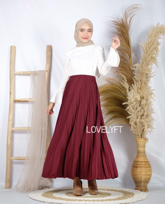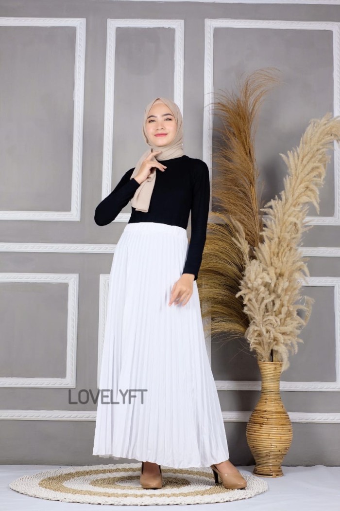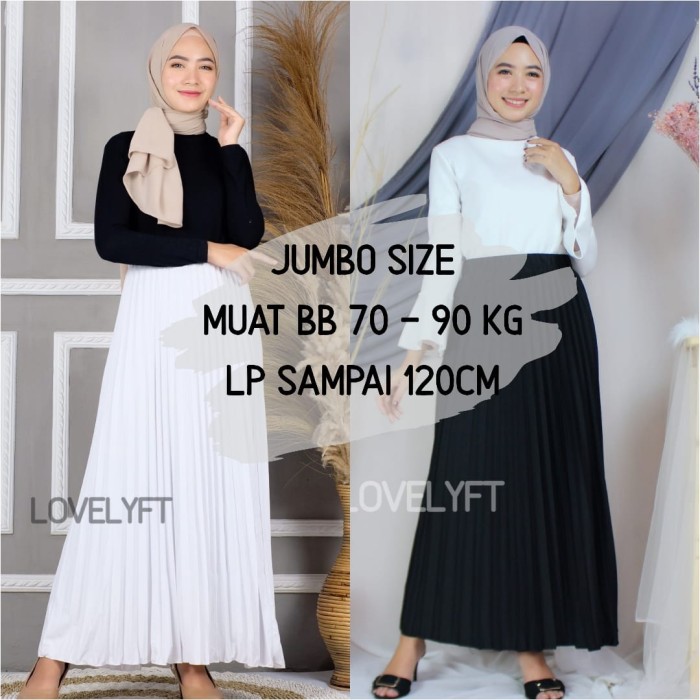 ROK PLISKET JUMBO SIZE PREMIUM QUALITY /ROK REMPEL PANJANG / ROK HIJAB - HITAM