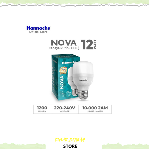 PAKET 3 PCS Lampu Bohlam LED NOVA 12W Cahaya Putih Hannochs