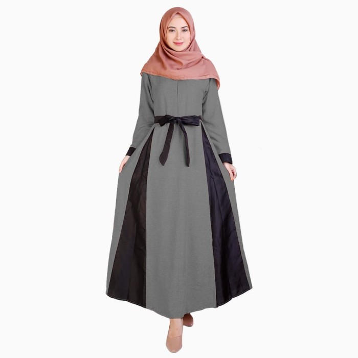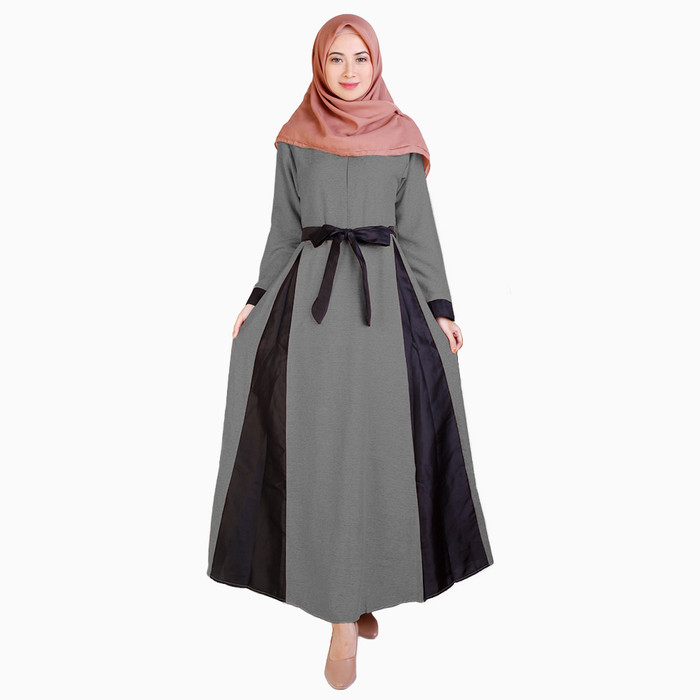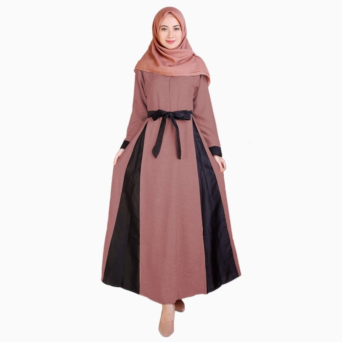 LONG DRESS GAMIS MAXI WANITA MUSLIM KOMBINASI WARNA - JFASHION LESTARI - MERAH MUDA