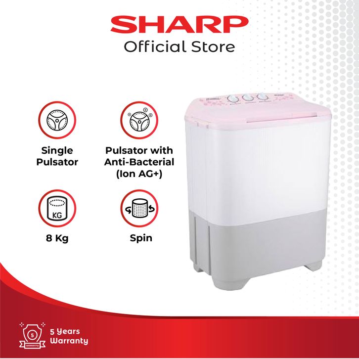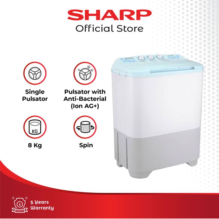 SHARP Mesin Cuci 2 Tabung Twin Tub ES-T90MW-BK/HK/PK , Blue, Grey, Pink , KAPASITAS 8KG ORIGINAL, GARANSI RESMI