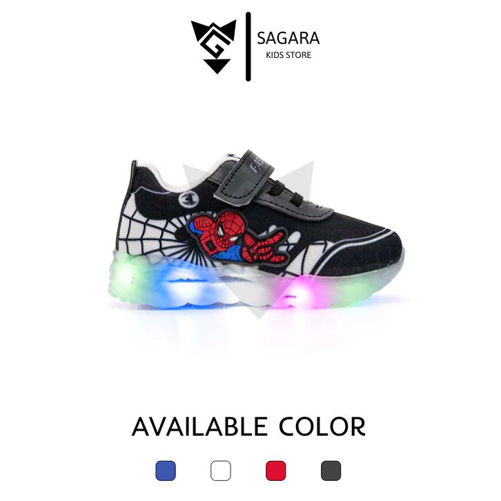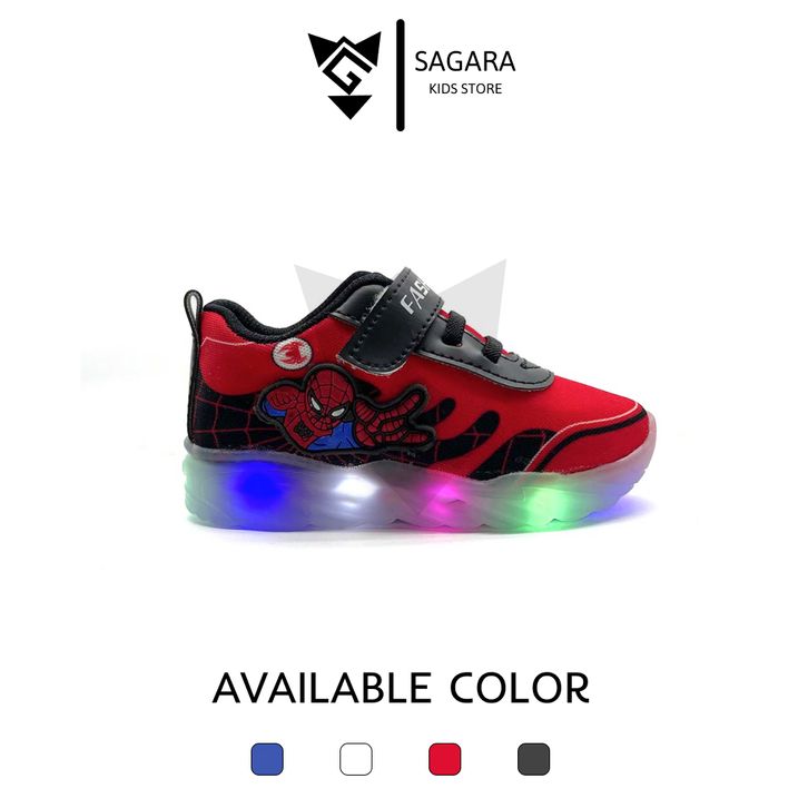 Sepatu Anak Laki Laki Sneakers Ultimate Spiderman Sepatu LED Menyala Anak Terbaru Sepatu Anak Cowok Sepatu Anak Gaya