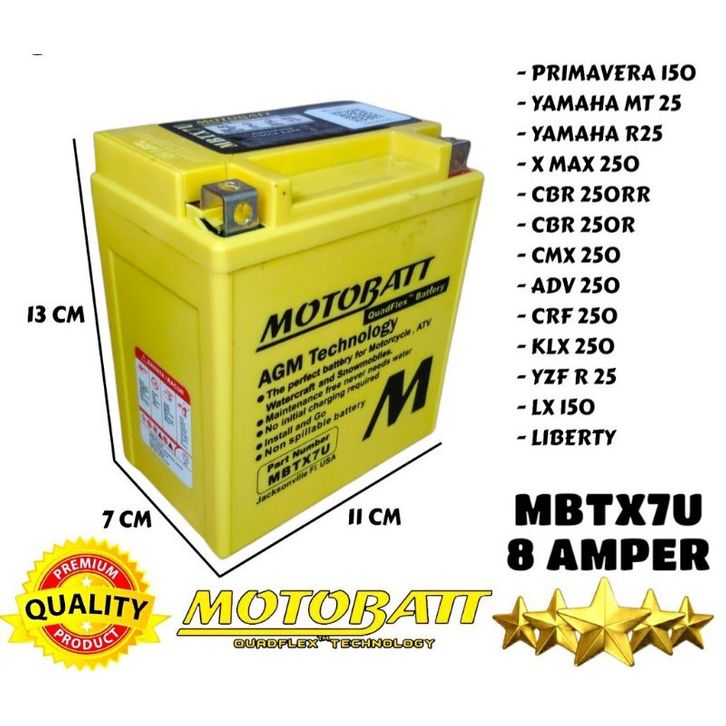 Aki Motor Vespa LX 150 LX 125 S125 S 150 Primavera SPRINT IGET 2V 3V GTS SUPER Motobatt MBTX7U ORIGINAL 12V 8 AMPERE