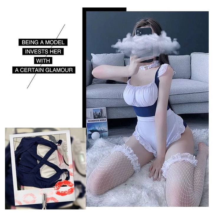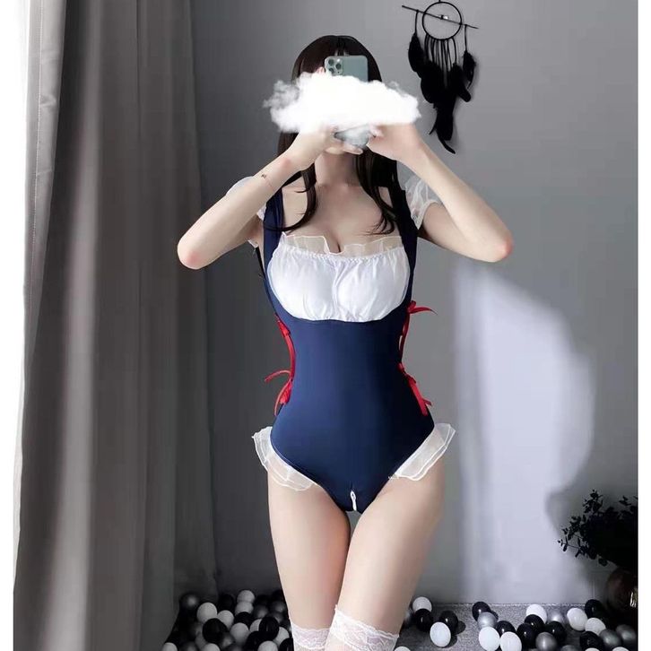Lingerie Sexy Pembantu Cosplay Bodysuit Open Crotch One Piece Backless Lingerie Babydoll A5360
