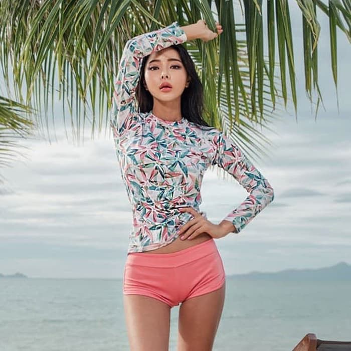 PINK KELLY baju renang wanita lengan panjang muslim bikini set korea murah rashguard women import / swimsuit import wan