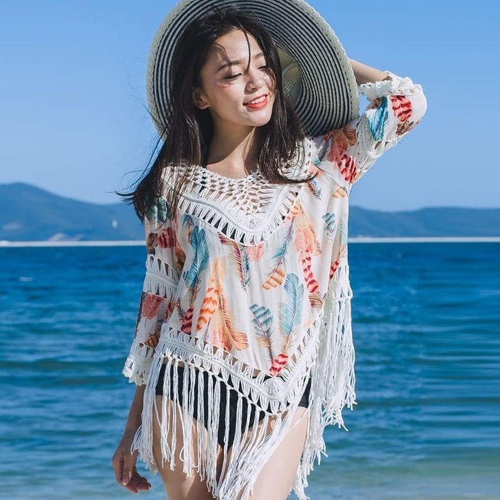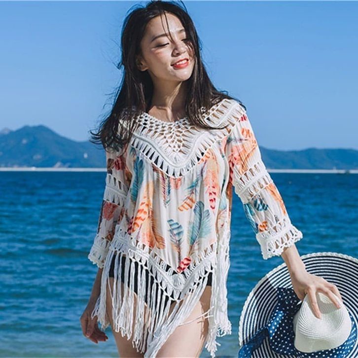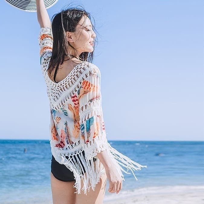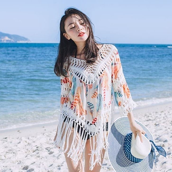 ORANGE bohemian outer / cardigan wanita import premium / cover up bikini mini dress beachwear / baju pantai bohemian ou