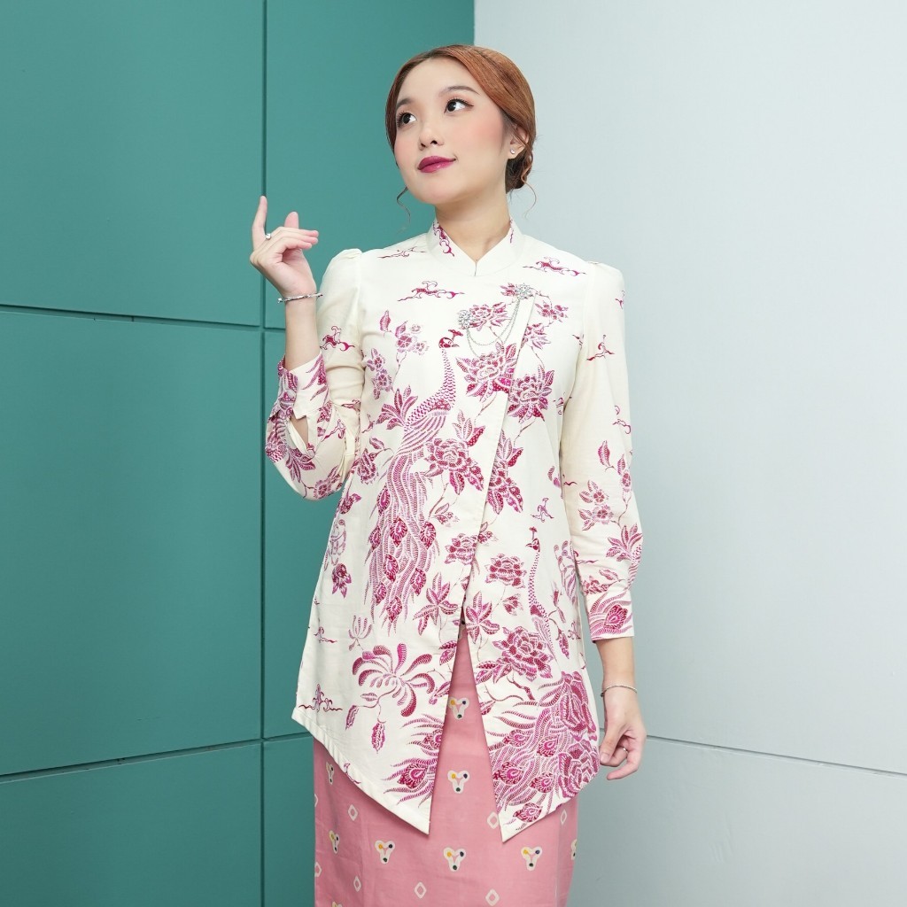 Atasan Kebaya Janggan Batik Furing Modern Klasik Baju Kondangan Lamaran Wisuda Pink Pastel