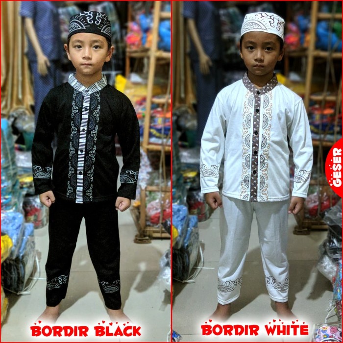 PAKAIAN MUSLIM ANAK BORDIR PUTIH BAJU KOKO GAMIS ANAK BERKELAS MARUNO - 2TH