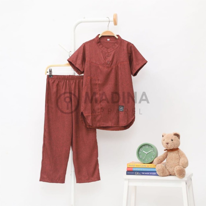 BAJU KOKO SETELAN ANAK LAKI -LAKI USIA 2 -12 TAHUN LENGAN PENDEK - HIJAU, 11-12 TAHUN