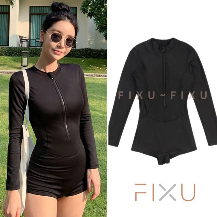 FIXU Swimsuit Baju Renang Diving Lengan Panjang Wanita One piece High Waisted Swimwear 1047