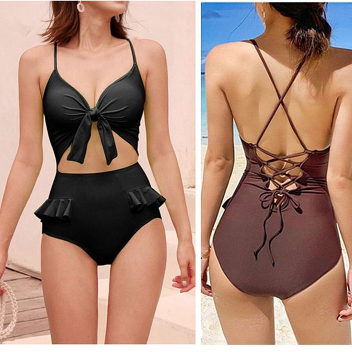 Swimsuit Baju Renang Wanita Sexy Ruffle Backless Full Adjust One Piece 8082