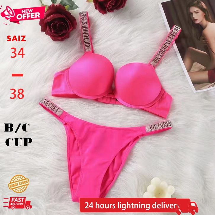 8030vs Victoria Set Lingerie Push Up Berenda Seksi Celana Dalam 2 Potong Huruf Panas I0XY
