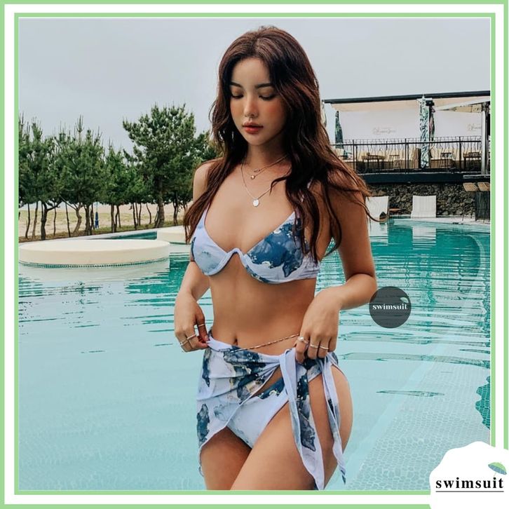 Swimsuit 3 Set Bikini Swimwear - Baju Renang Wanita Kawat Motif Abstrak Import Premium 9054