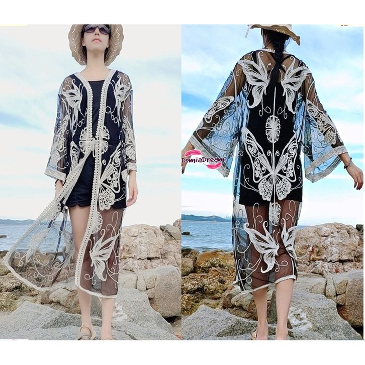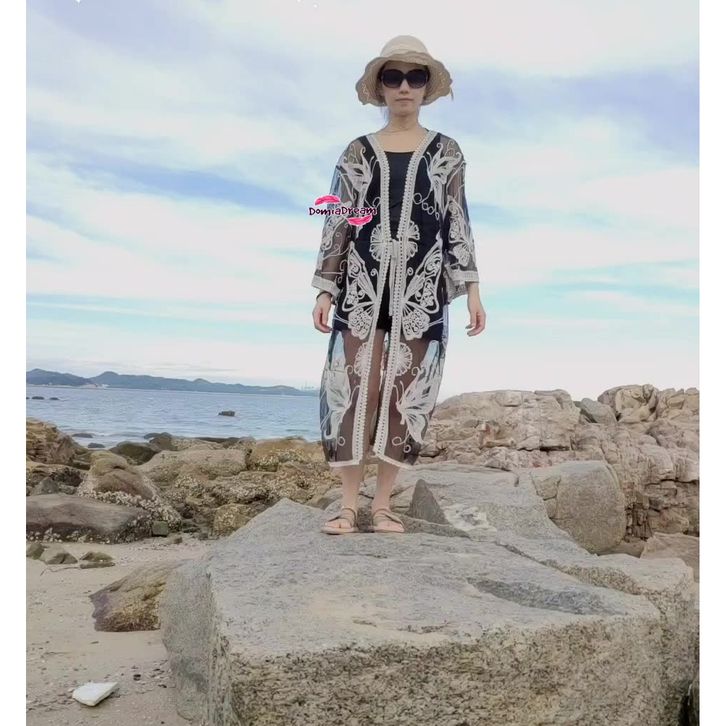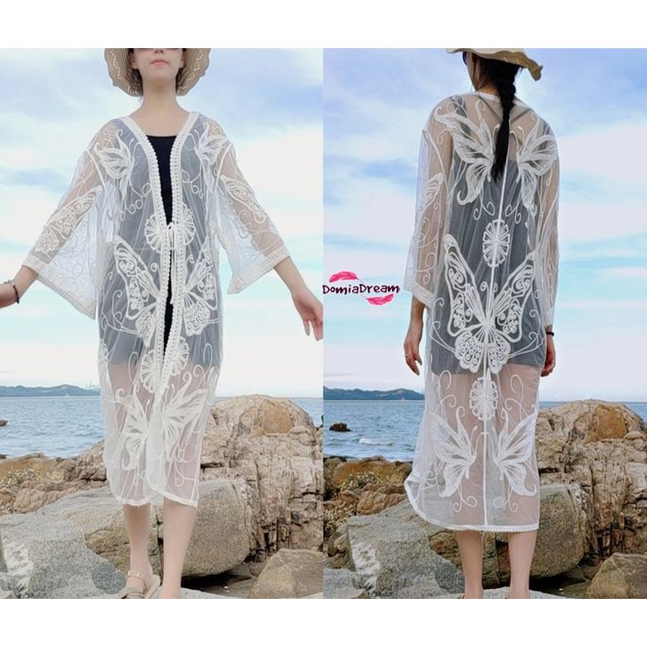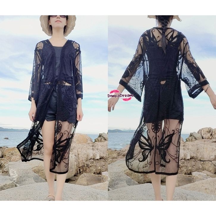 Cover Bikini Outer Baju Renang Motif Kupu Cardigan Swimwear