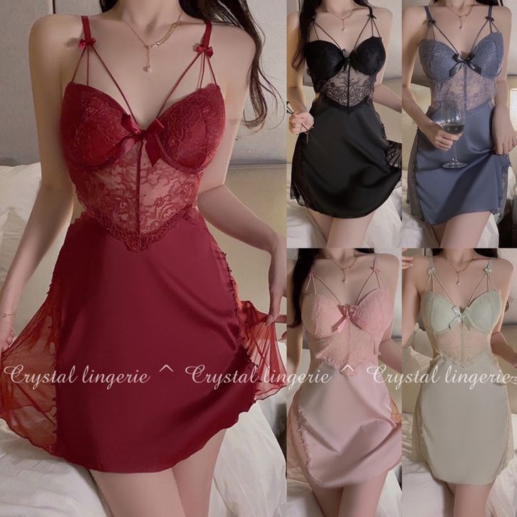 Crystal Lingerie Dress Cup Bra Push Up Baju Tidur Sexy Lingerie Wanita / Sleepwear Lingerie Dress Wanita 231