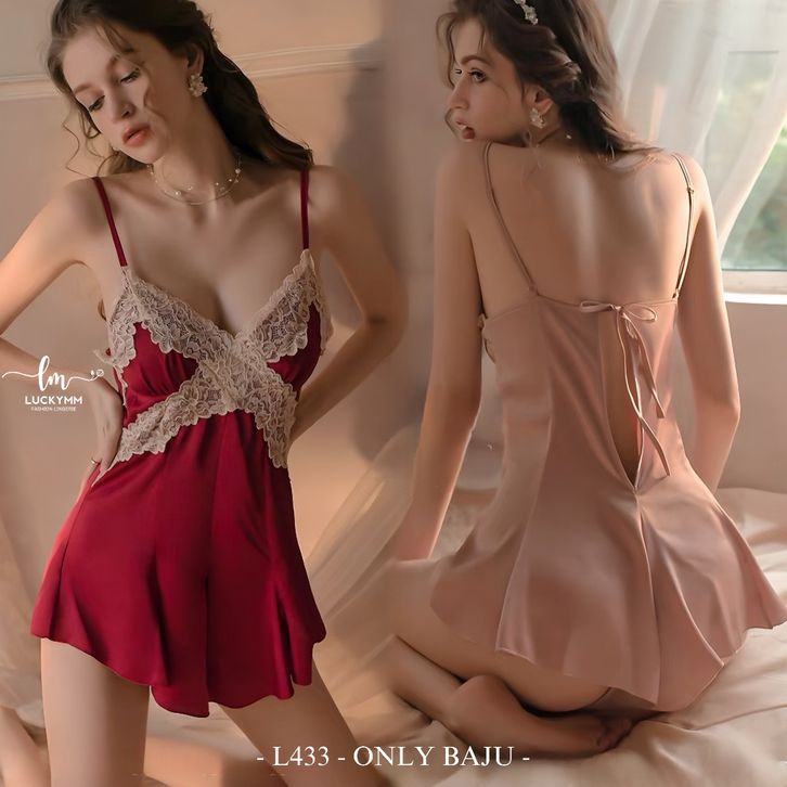 Luckymm Sexy Lingerie Dress Wanita Dewasa / Baju Dinas Wanita Sexy Bahan Satin 433