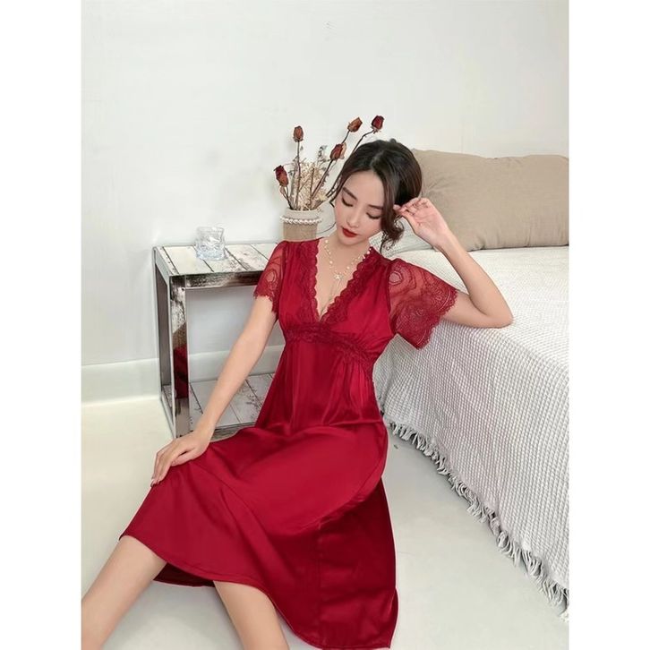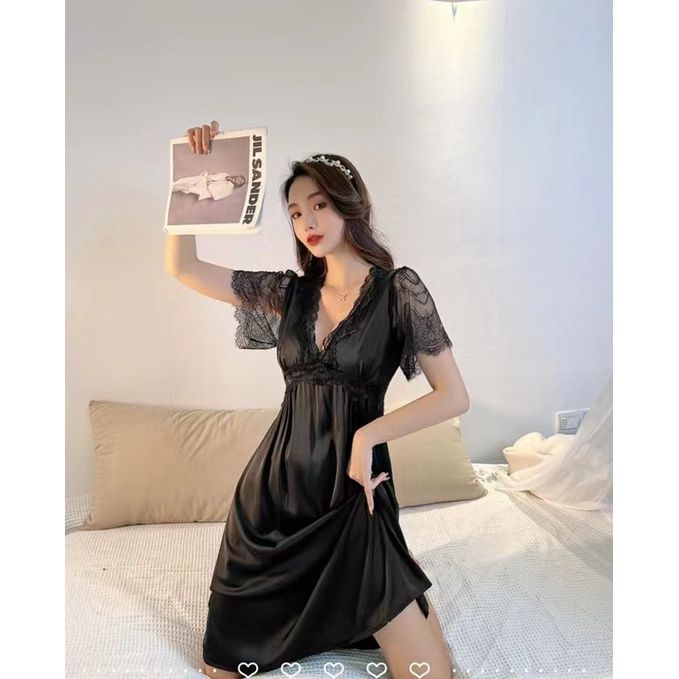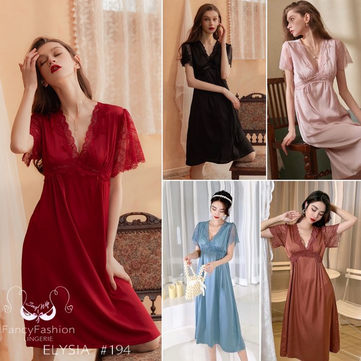SL194 Sexy Lingerie Dress Baju Tidur Sexy Lingerie Wanita / Baju Tidur Lingerie Satin / Sleepwear Lingerie Long Dress S