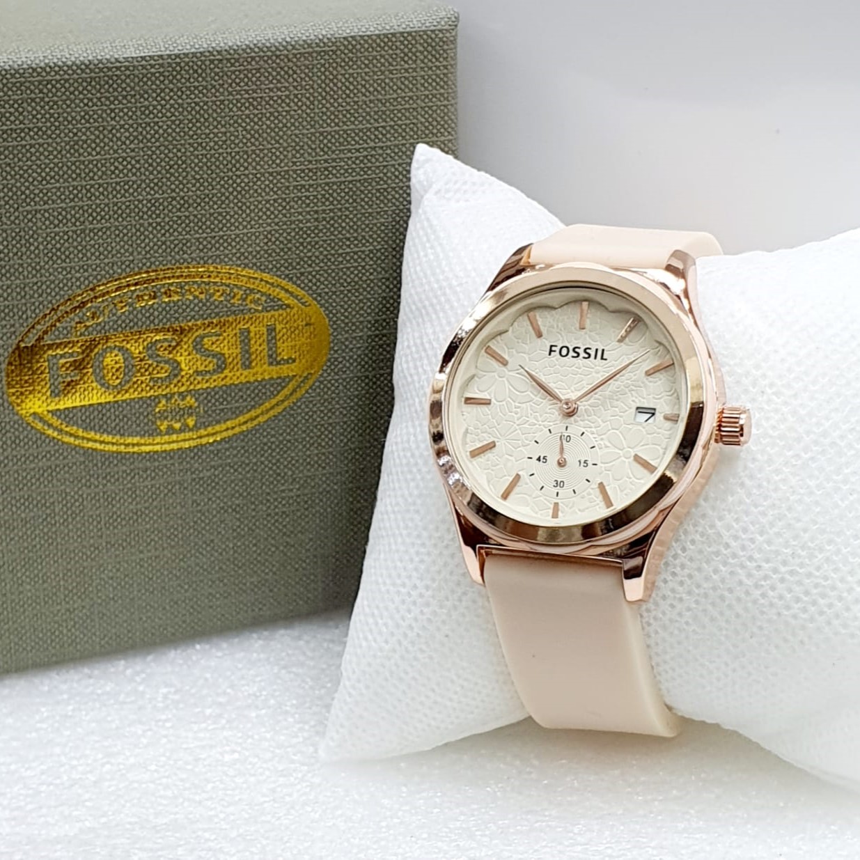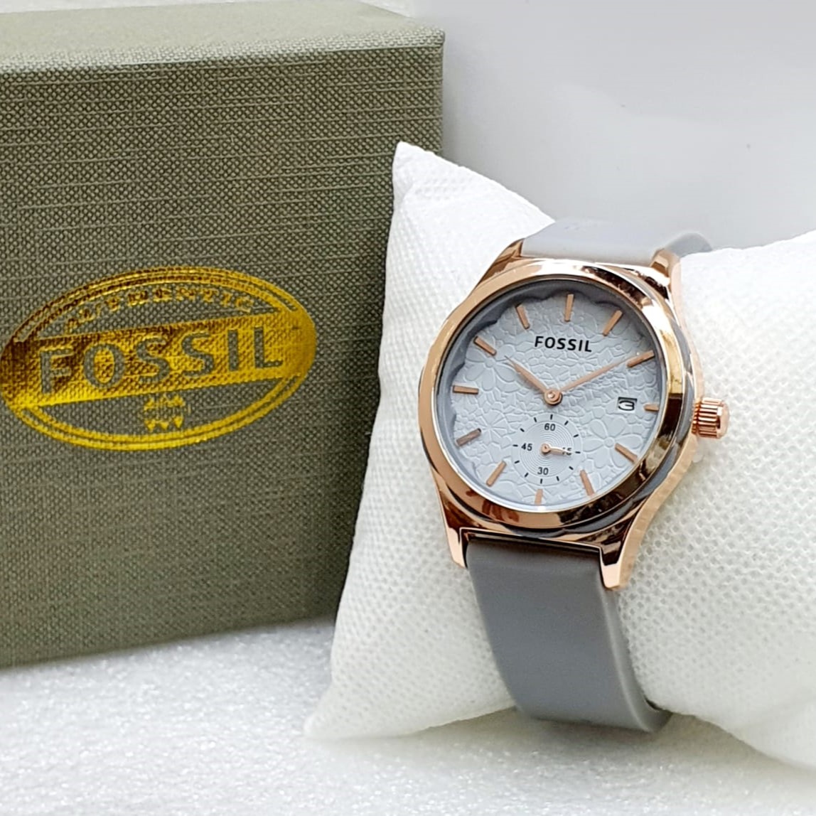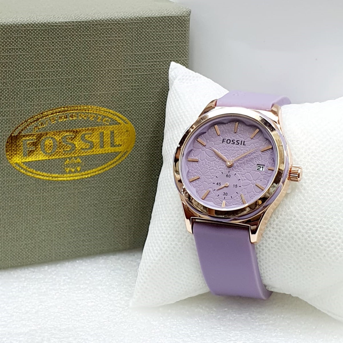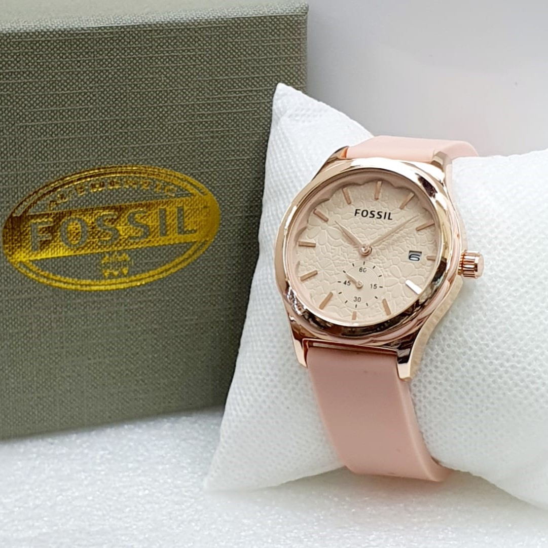 Jam Tangan Wanita Fossil Analog Detik bawah Rubber Strap Water Resistant 3 Atm