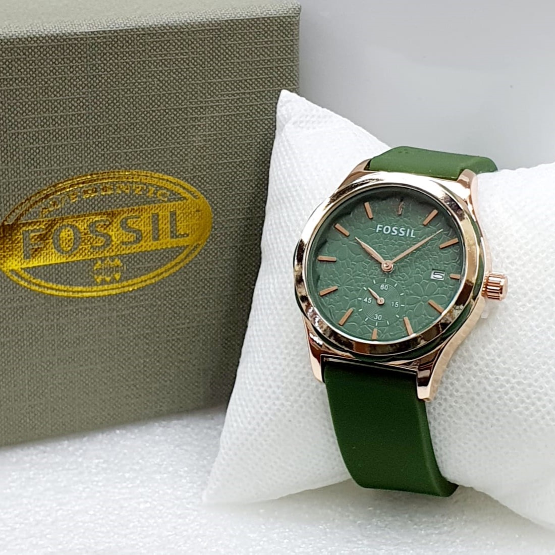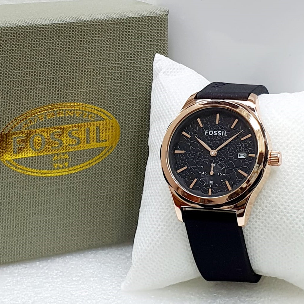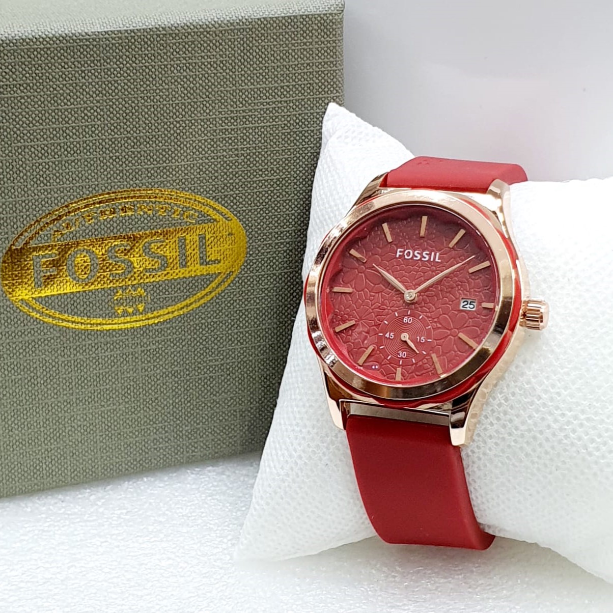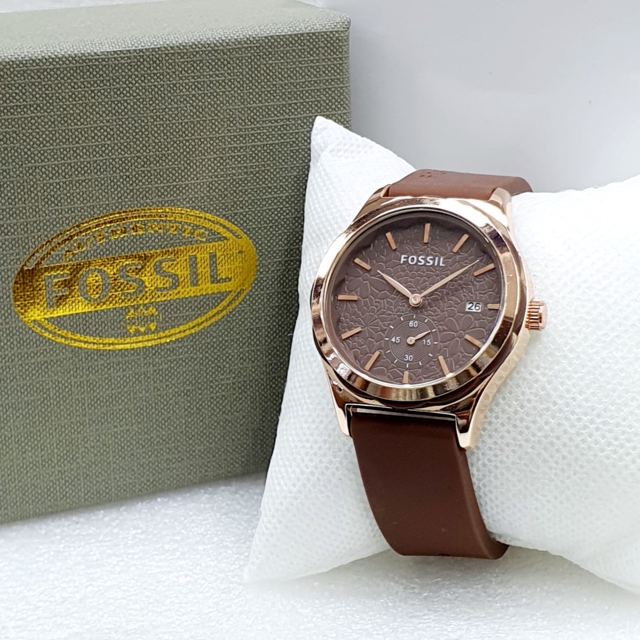 Jam Tangan Wanita Fossil Analog Detik bawah Rubber Strap Water Resistant 3 Atm