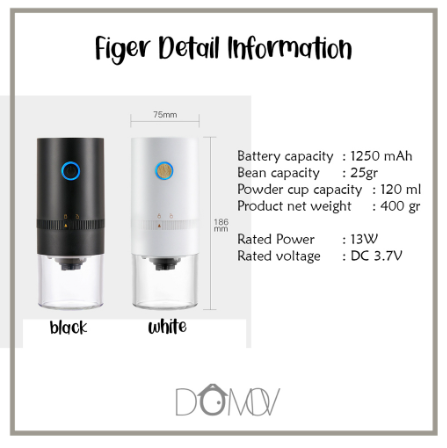 DOMOV FIGER Coffee Grinder Electric Penggiling Kopi Portable Elektrik USB Type-C