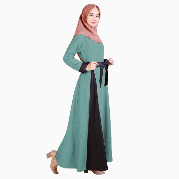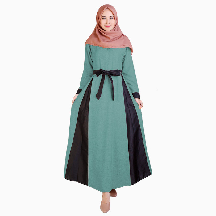 LONG DRESS GAMIS MAXI WANITA MUSLIM KOMBINASI WARNA - JFASHION LESTARI - MERAH MUDA