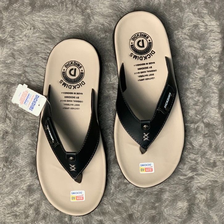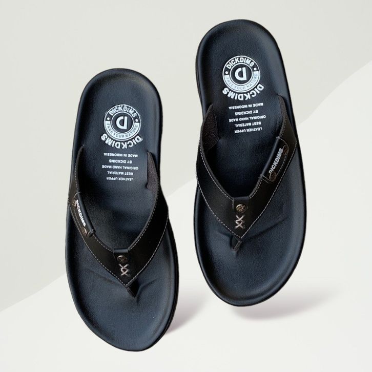 Sandal Jepit Pria Dewasa Sendal Distro Cowok Hitam Cream Fashion Kasual Santai Bahan Kulit Sintetis Premium Kekinian