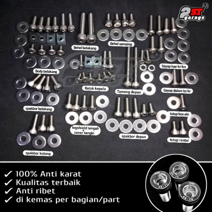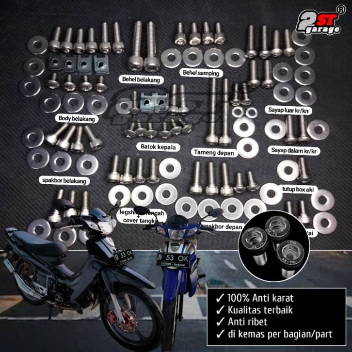 BAUT BODI FULLSET YAMAHA FIZR/FORCE 1 STAINLESS STEEL 304 ANTI KARAT / BAUD BODI BAUT L STENLIS THE A2-70 YAMAHA F1ZR FU