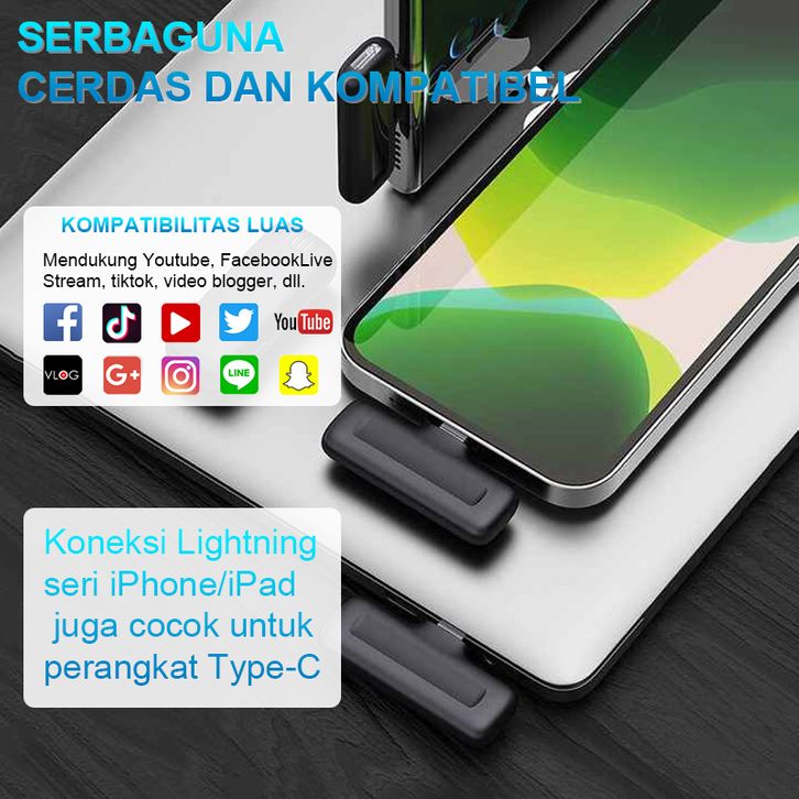 [Mall] Mic Wireless Clip On/Mic Bluetooth Portable Mic Clip On Wireless Microphone 2 Mic Nirkabel Lavalier Dual Wireless
