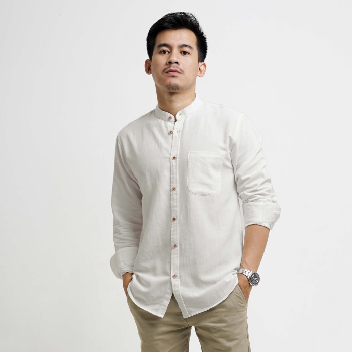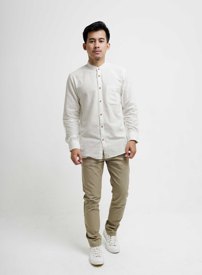 KEMEJA LINEN PANJANG PRIA KERAH SANGHAI KOKO PUTIH BY BRAVO PROJECT - M