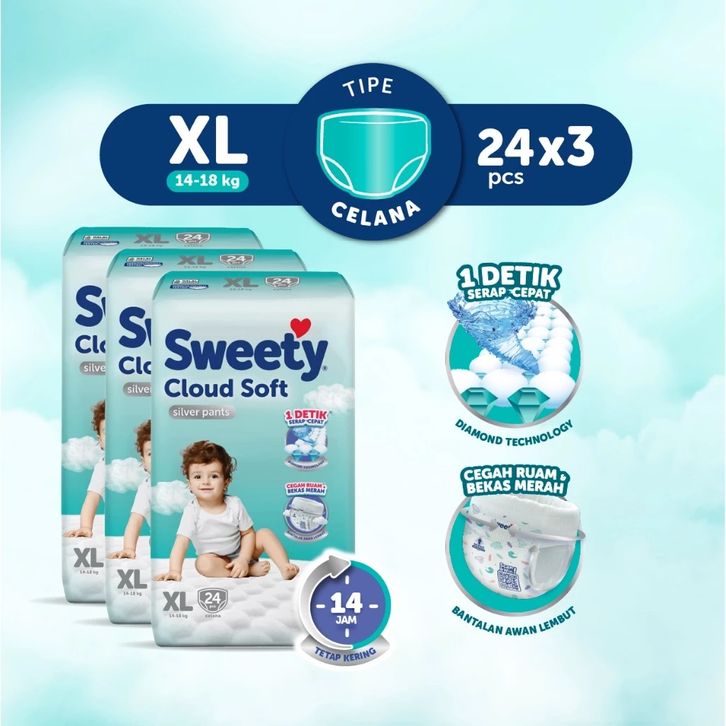 SWEETY SILVER PANTS CLOUD SOFT XL 3 X 24S POPOK CELANA BABY DIAPERS PEMPES POPOK BAYI
