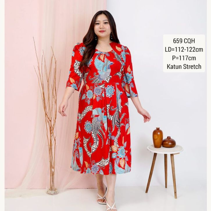 Dress Bigsize Batik Hanna Baju Terusan Cewek Gaun Etnik Jumbo Fashion Wanita Model Warna Cantik Kekinian Trendy