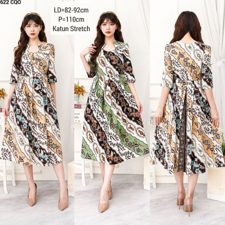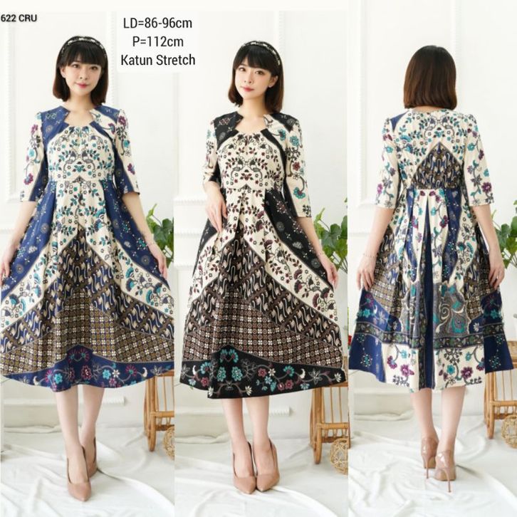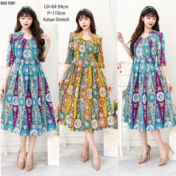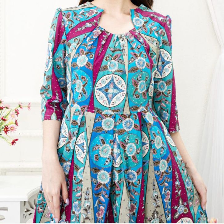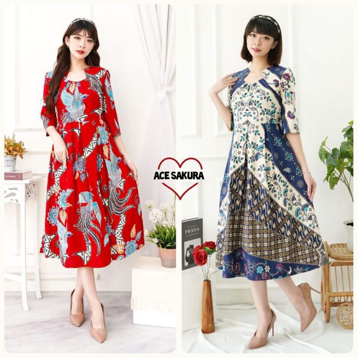 Dress Vanaya Batik Terusan Kerja Kantor Wanita Baju Fashion Lengan Tanggung Pakaian Cewek Motif Trendy Kekinian