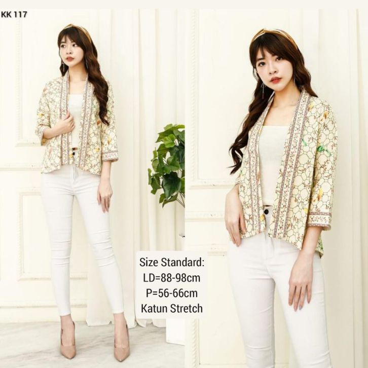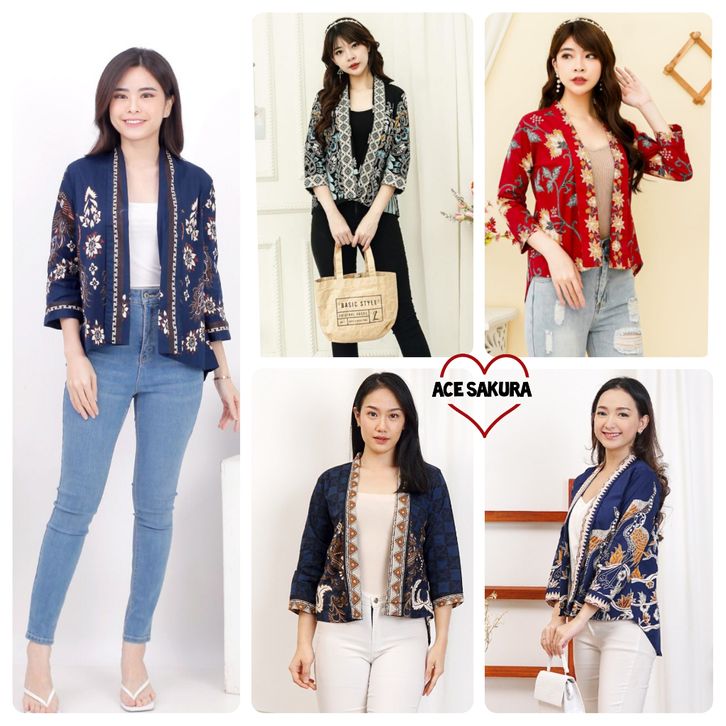 Blouse Batik Rosa Outer Cardigan Atasan Kerja Kantor Wanita Cardi Blazer Etnik Pakaian Fashion Cewek Kekinian Trendy