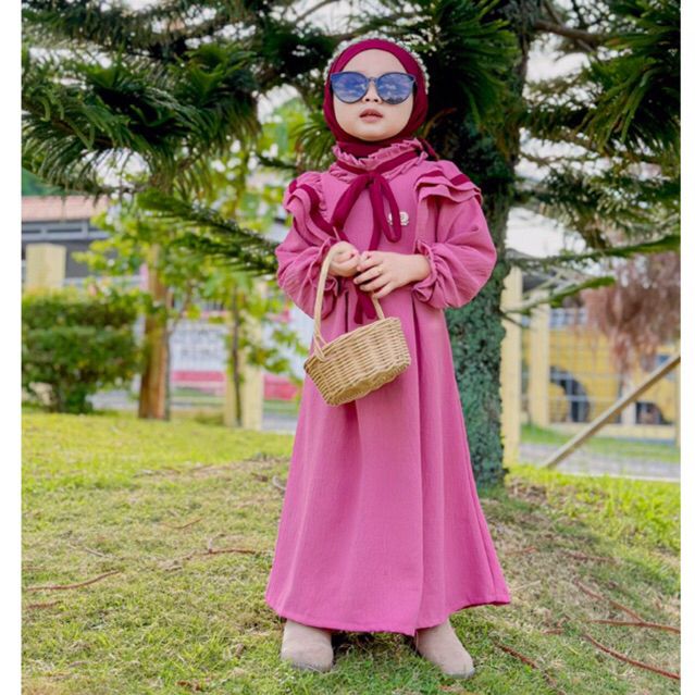 Gamis Shanum Anak Perempuan Dress Baju Muslim Ulang Tahun Pakaian Lebaran Anak Cewek Kekinian Couple Ibu Trendy