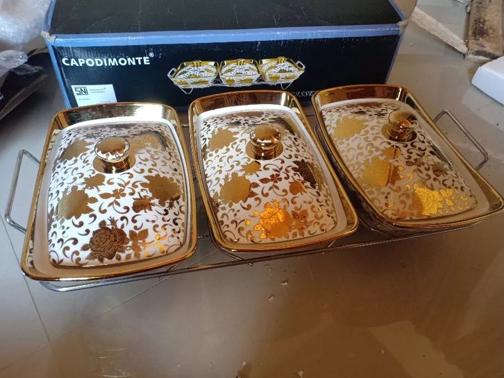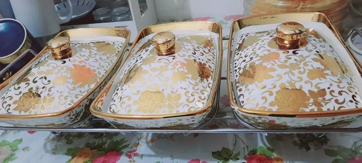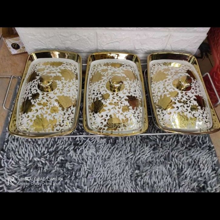 PRASMANAN WADAH SAJI tempat lauk set 3 gold