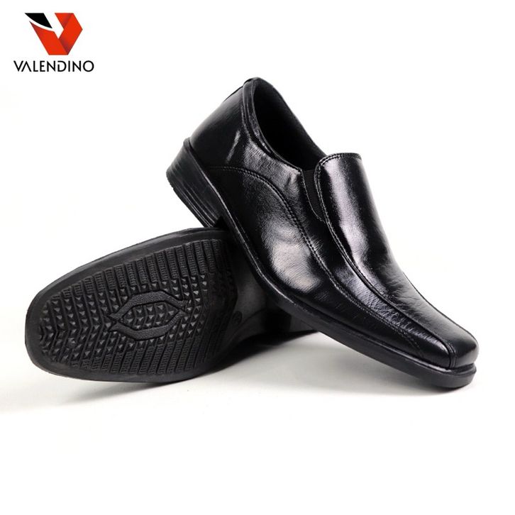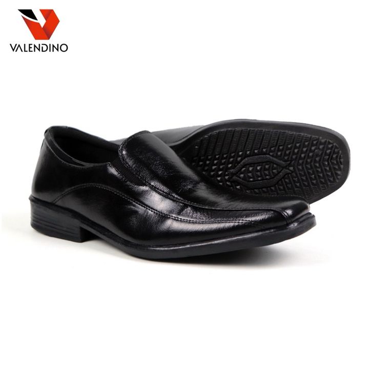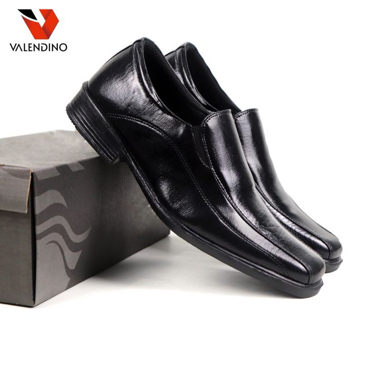 Sepatu Pantofel Pria Kulit Slip On Warna Full Hitam Fashion Aksesoris Cowok Formal Kasual Kerja Kantoran Kekinian