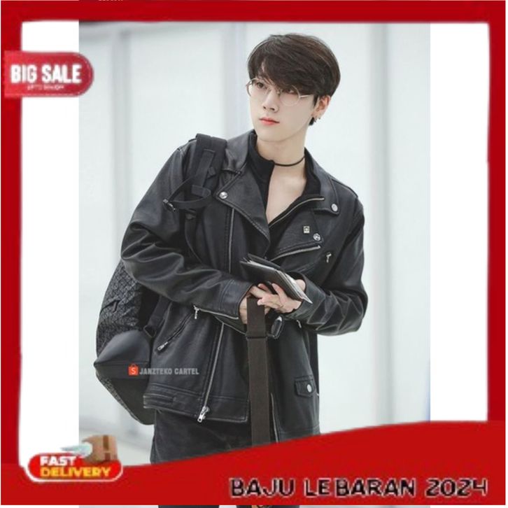 JNK x JOHNY Jaket Oversize Kulit Sintetis Pria Korea KPOP Style Ten NCT WAYV Faux Synthetic Leather Premium Original