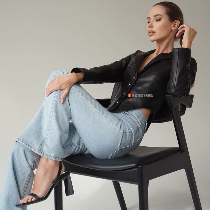 JNK x GEO Jaket Wanita Blazer PU Leather Jacket Shirt Black Bahan Semi Kulit Sintetis Viena Faux Synthetic Premium