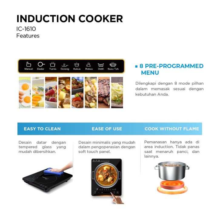 [Mall] Kompor listrik Midea Kompor Induksi IC-1610 Hitam Induction Cooker Kompor Listrik