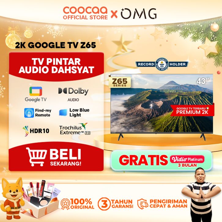 NEW COOCAA 43 inch Z65 - GOOGLE TV - 2K LED-TV - HDR 10 - Flicker Free - Low Blue Light - Eye Care (COOCAA 43Z65)