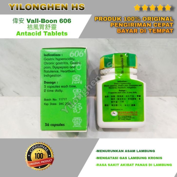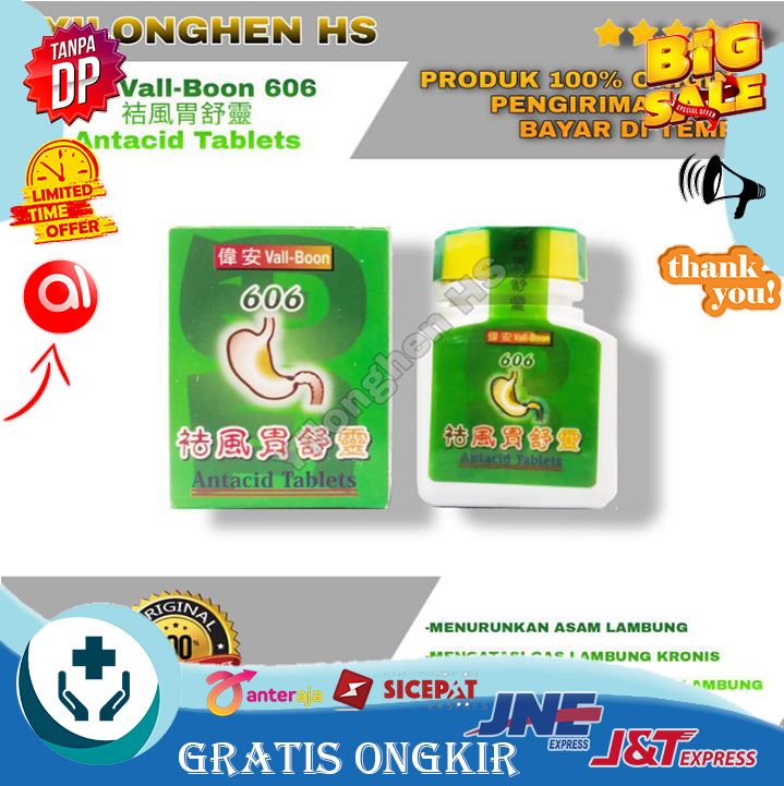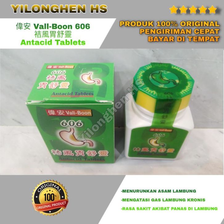 AMPUH VALL BOON 606 ANTACID TABLETS - JIE FENG WEI SHU LING - OBAT ASAM GAS LAMBUNG - MAAG KRONIS AKUT