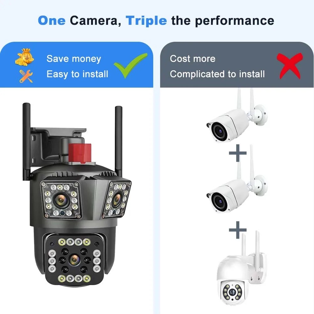 V380/V380PRO Ipcam cctv 12MP WiFi tiga lensa Security Camera Wireless Outdoor 12X Zoom