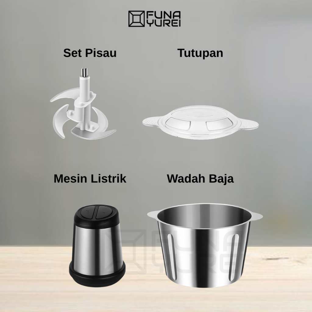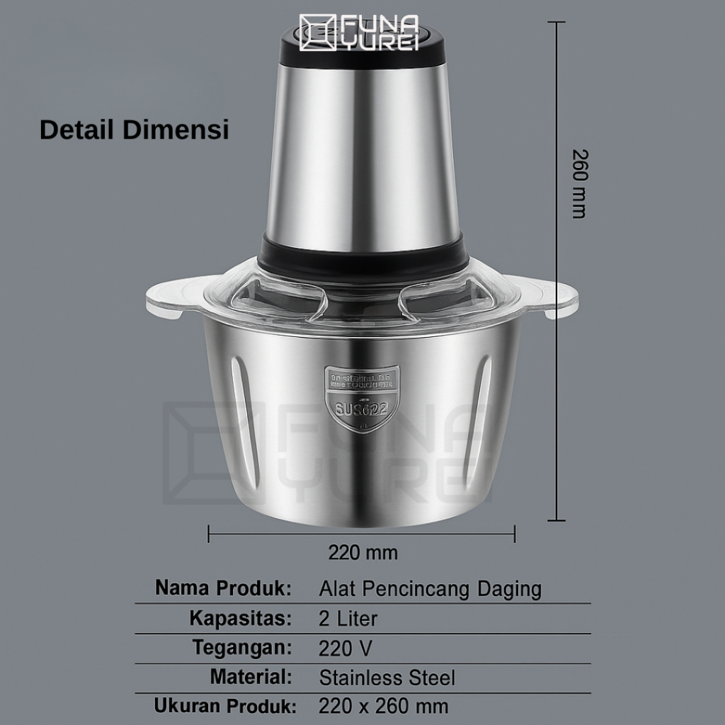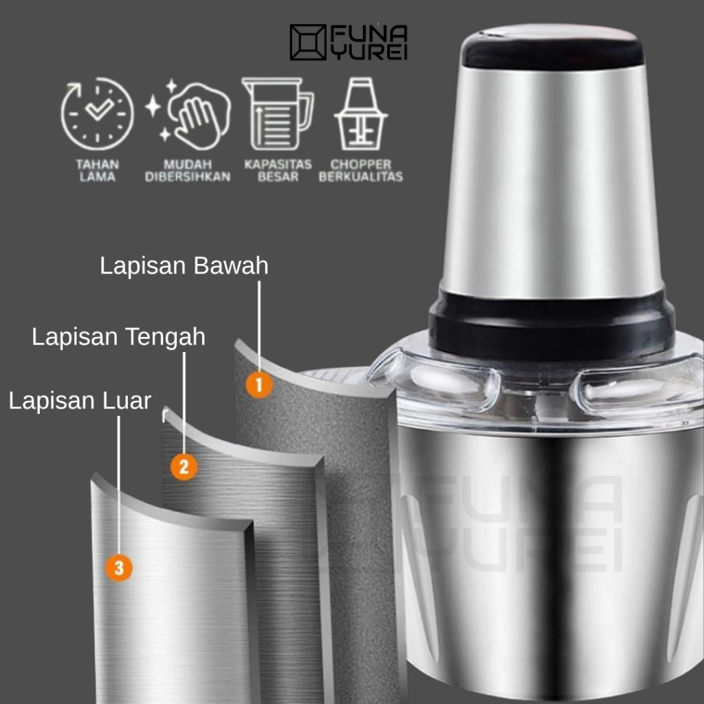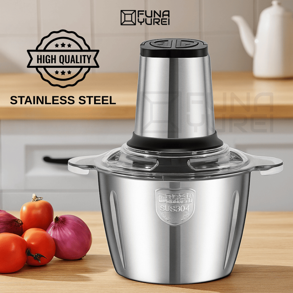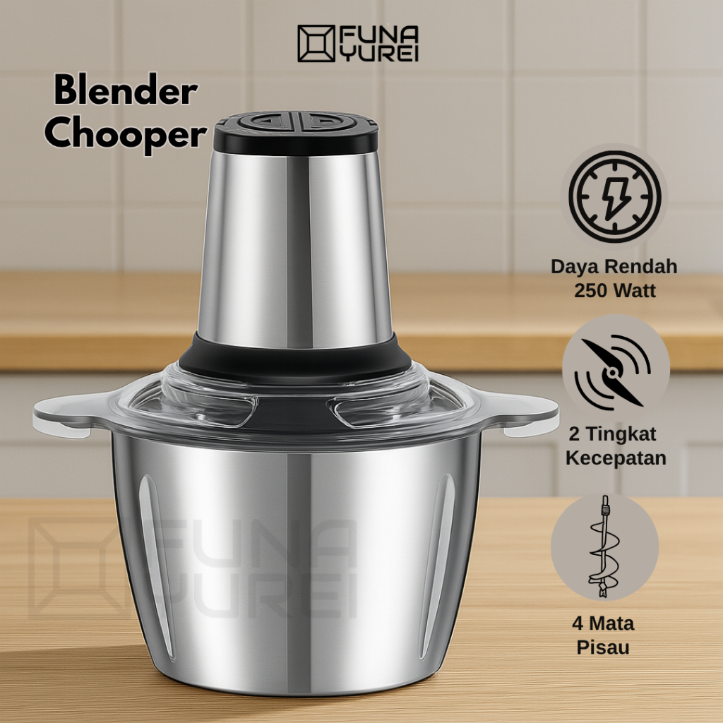 chopper Blender Stainless Steel 2L – Penggiling Daging, Bumbu, & Sayur dengan 4 chopper bumbu