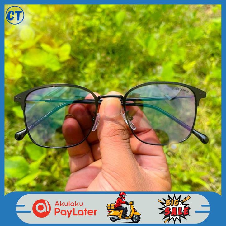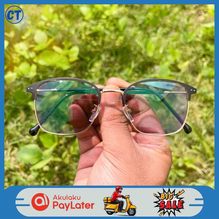 bonus box lap cairan Kacamata pria lensa photocromic normal minus plus cilinder Terkini Keren Polarized Gaya Asli Hitam